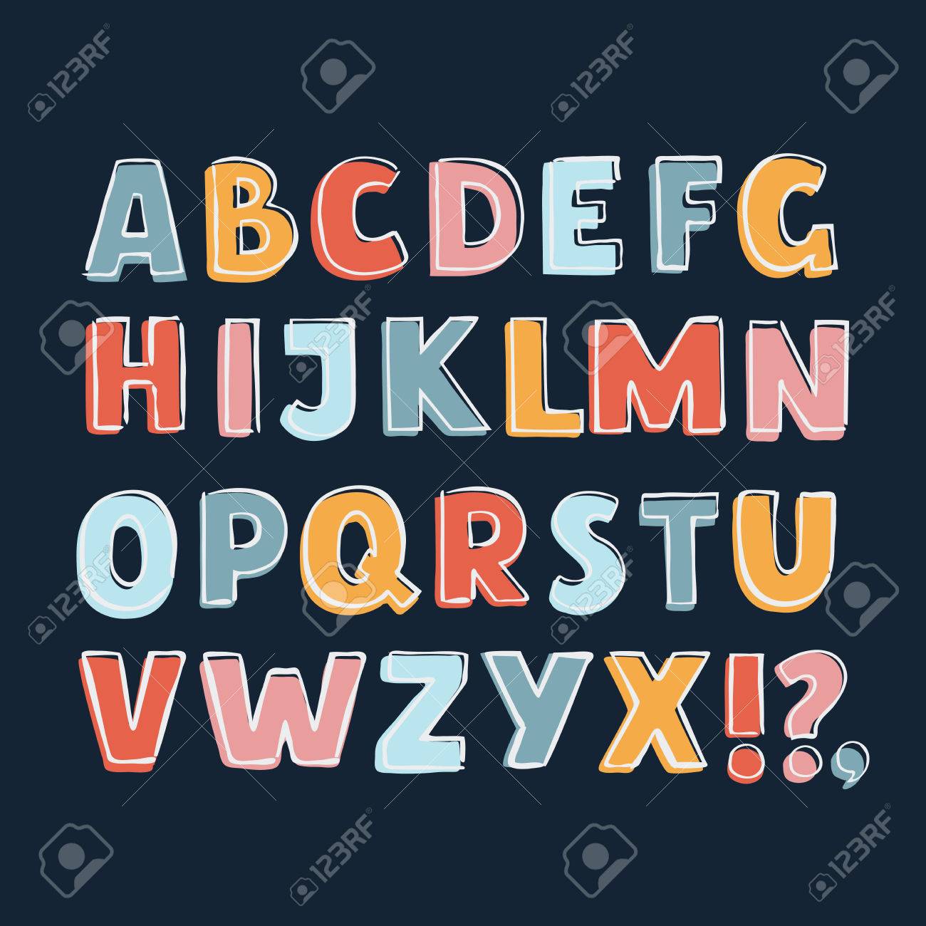 英語のアルファベットのベクター画像、タイポグラフィデザイン。装飾的なラテン文字のセットの背景。カラフルなラテンABCをかわいい スタイルで作ったポスター。手書きのフォント。異なる漫画の文字」のベクター画像素材 ロイヤリティフリー678272908Shutterstock。