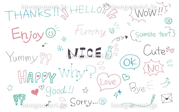 手書き文字。英語メッセージセット。カラフル。のイラスト素材208178970 毎月1点無料 フリー のストックフォト イメージマート。