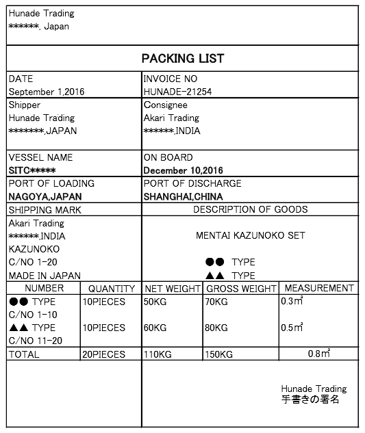 貿易書類・パッキングリスト フォーマットも掲載!HUNADE 輸出入と国際輸送ガイド。