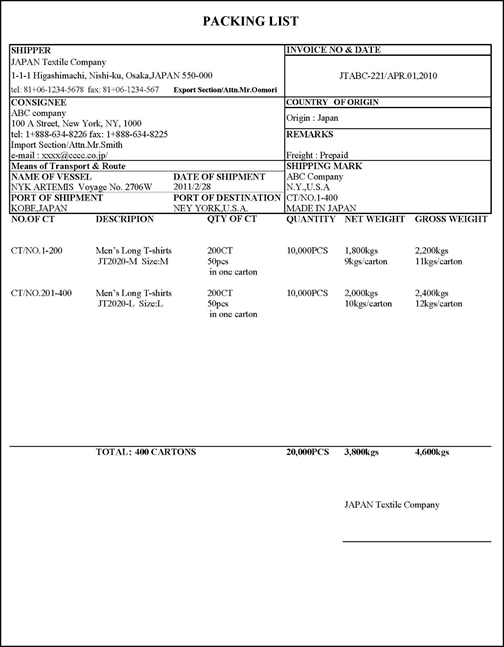 貿易 パッキングリスト PACKING LIST を間違えない!作成注意点と対応ソフトサンプランソフト。