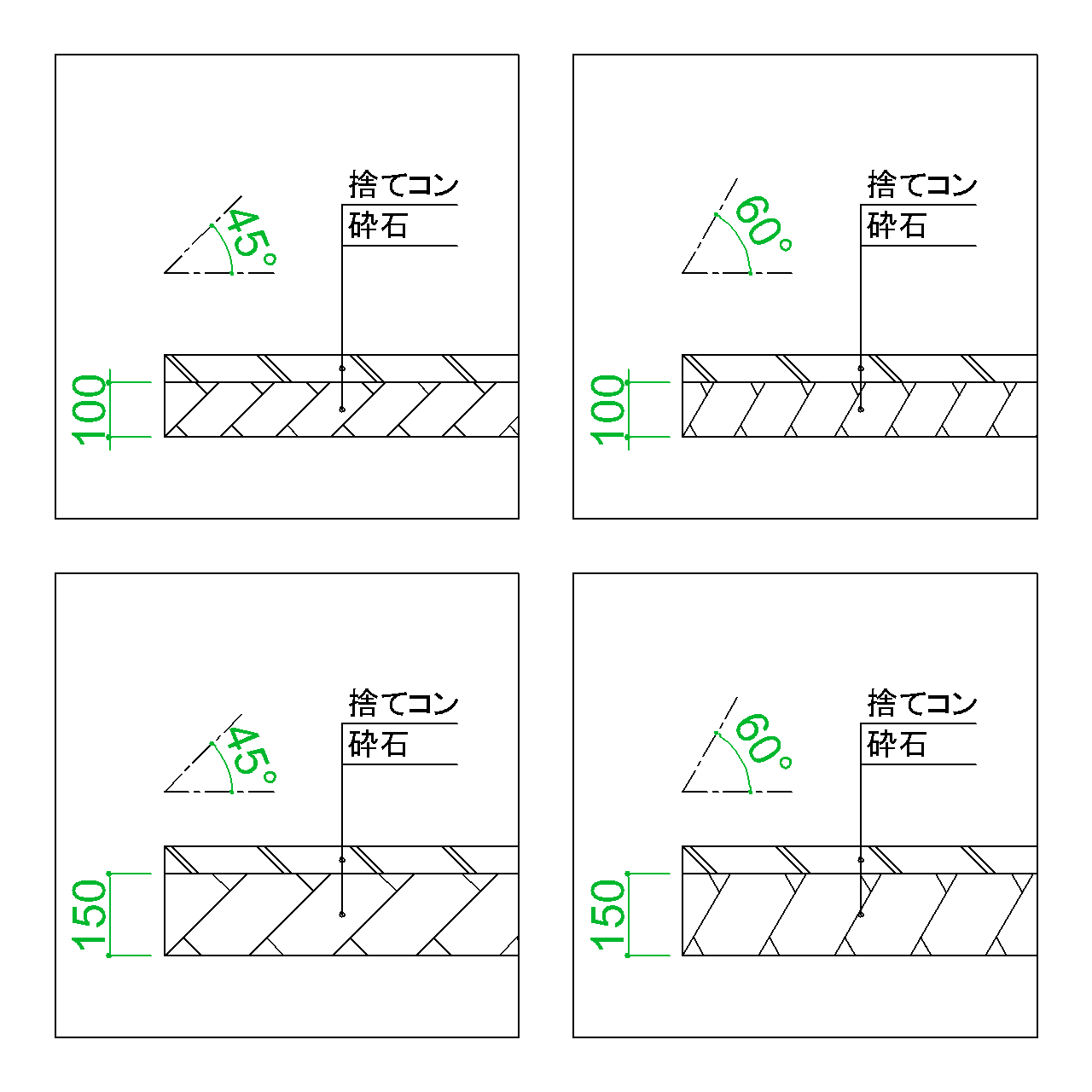 砕石 捨てコン 断面図の書き方・参考図 DXF autocad DWG 2dd-smp_0130。