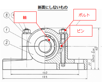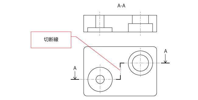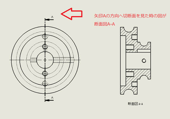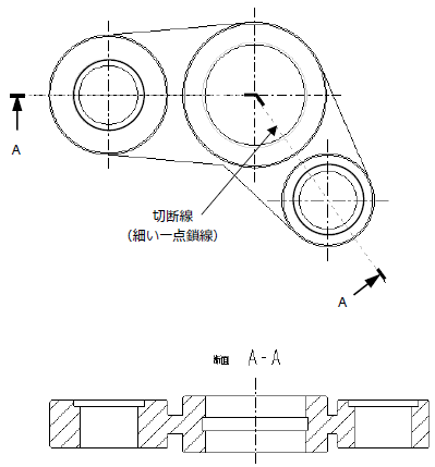 全断面図」と「片面断面図」:機械製図道場 入門編7。