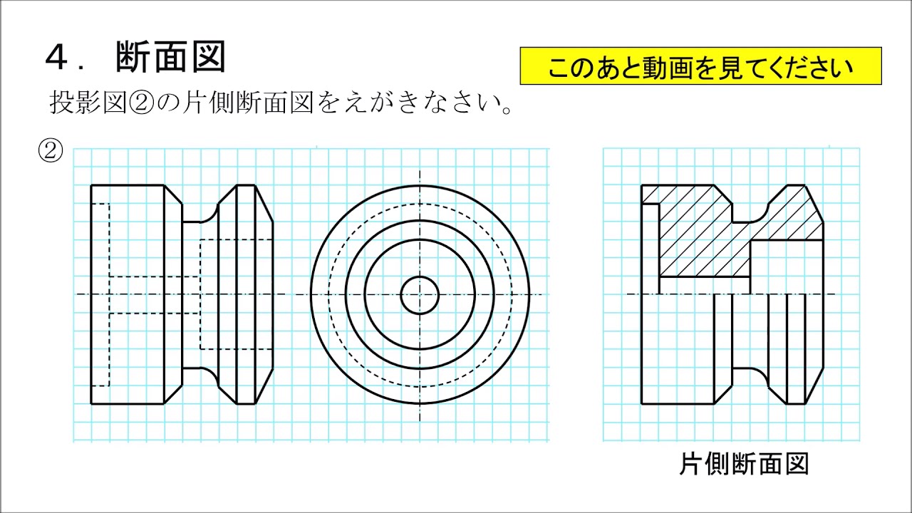 1MM,1MP 機械製図Ⅰ CAD演習5回目 5.断面図の表し方。