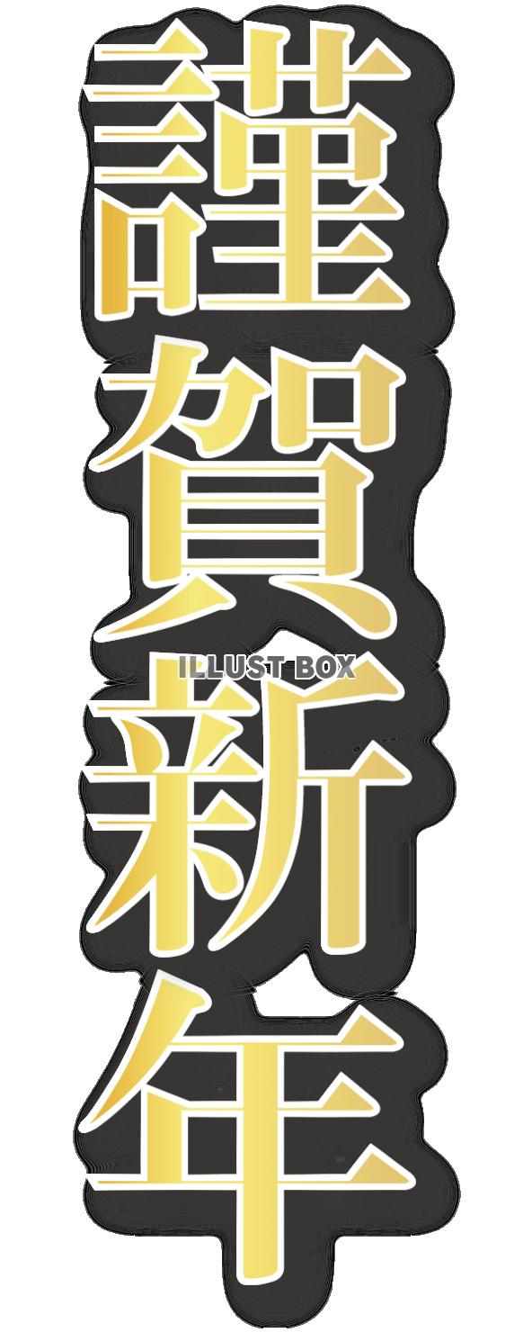 謹賀新年 縦文字ふち白 金のシンプルなフォント素材:イラスト無料。