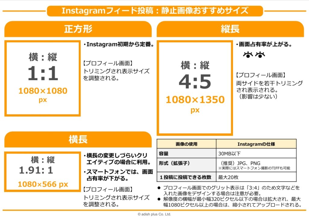 Instagram インスタグラム 静止画像のアスペクト比と最適サイズアディッシュプラスのSNS運用代行。
