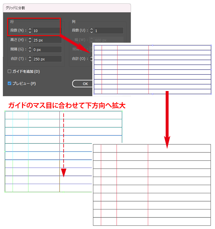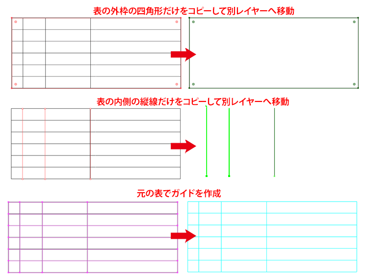 Illustrator 「長方形と直線のパスだけで作成された表の罫線を、等間隔に再配置できる」 スクリプトDTP Script note。