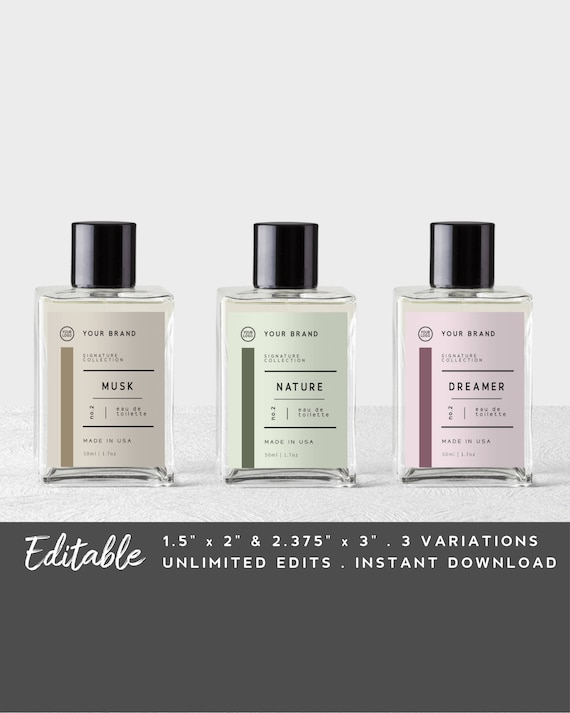編集可能な製品ラベル テンプレート - ボトル香水ラベル、フレグランス ボトル ラベルの印刷可能、ミニマリスト ラベル デザイン、小規模ショップのブランディングラベル - Etsy 日本。