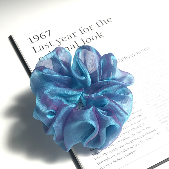 夏季限定カラー もっと夢色!✨グラン・ブルー✨ おしゃれな大人のためのオーガンジーシュシュ✨青水色系 玉虫偏光色 シュシュ Tiare 8 通販17661797Creema クリーマ。