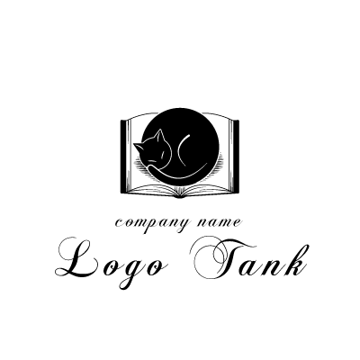 本の上で寝る黒猫のロゴ ロゴタンク 企業・店舗ロゴ・シンボルマーク格安作成販売。