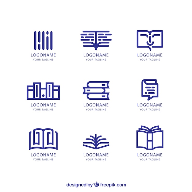 リニアスタイルの書店ロゴのセットPremiumベクトル素材。