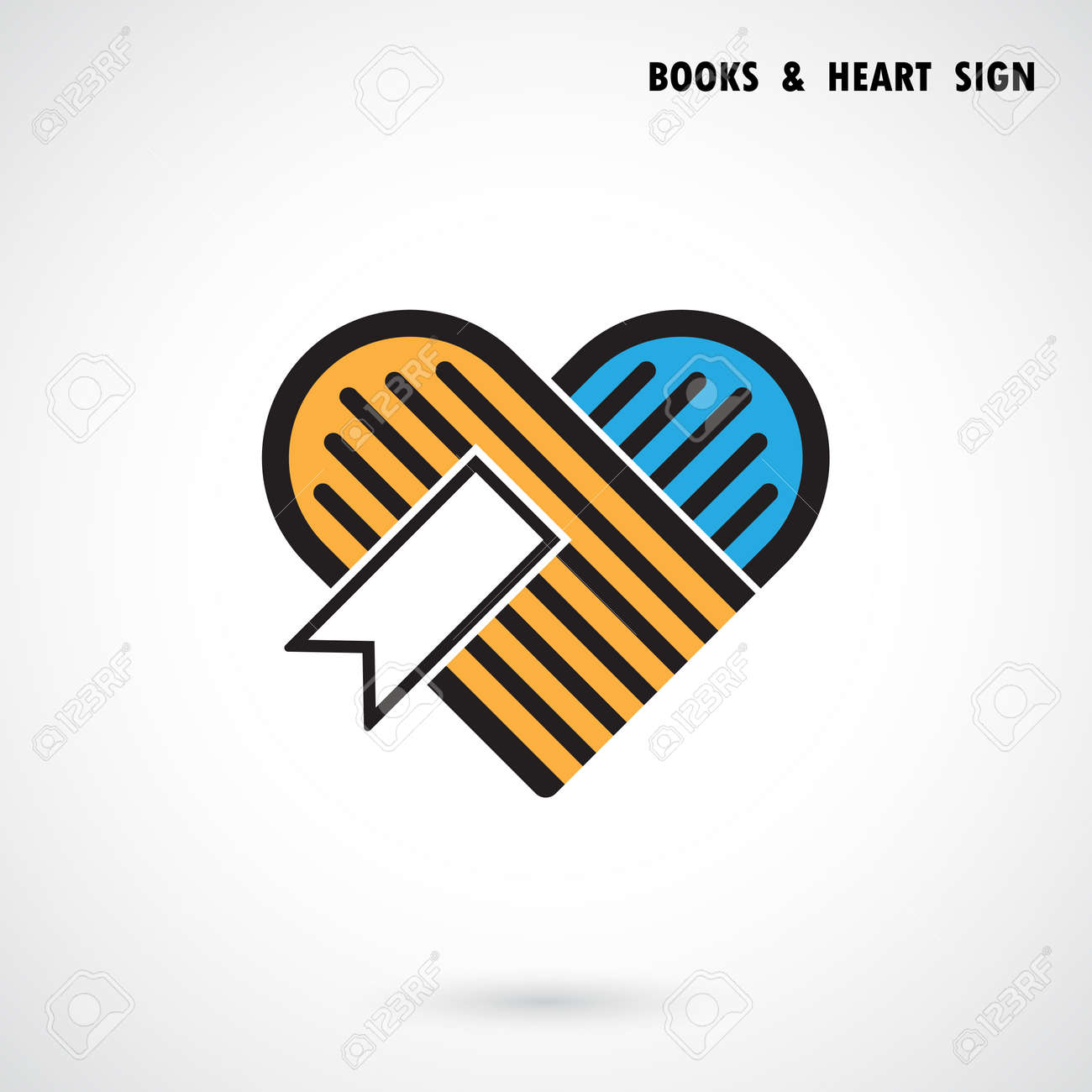 創造的な本と心抽象的なベクトルのロゴ デザイン。本屋や図書館はベクトルのロゴの設計です。学習、研究アイデアアイコンです。愛本ハートマーク。企業内教育やビジネスの創造的なロゴのコンセプト。ベクトル図のイラスト素材・ベクター Image 44976331。