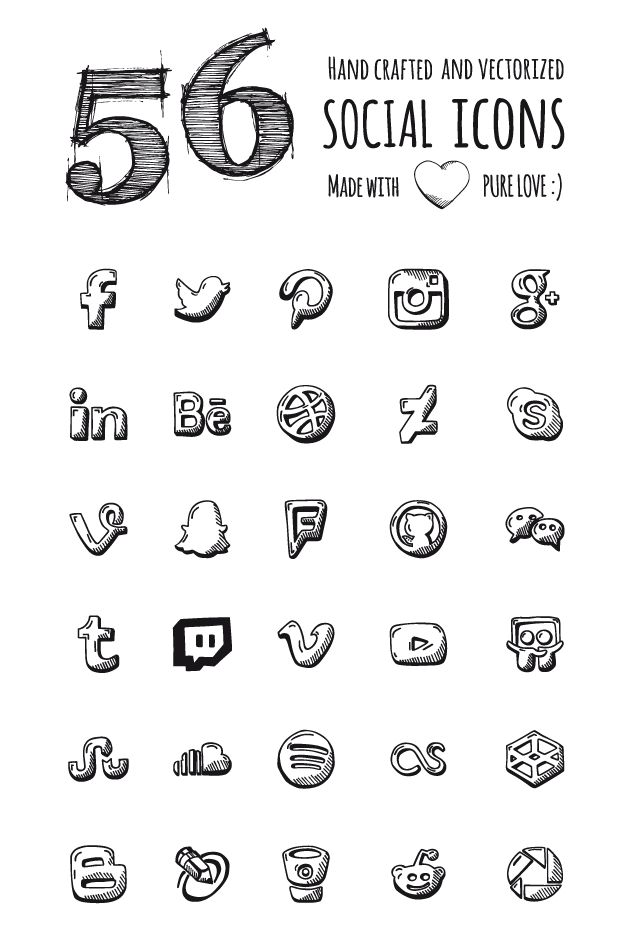 手描きのラフスケッチ風の無料ソーシャルメディアアイコン素材セットGIMP2の使い方。