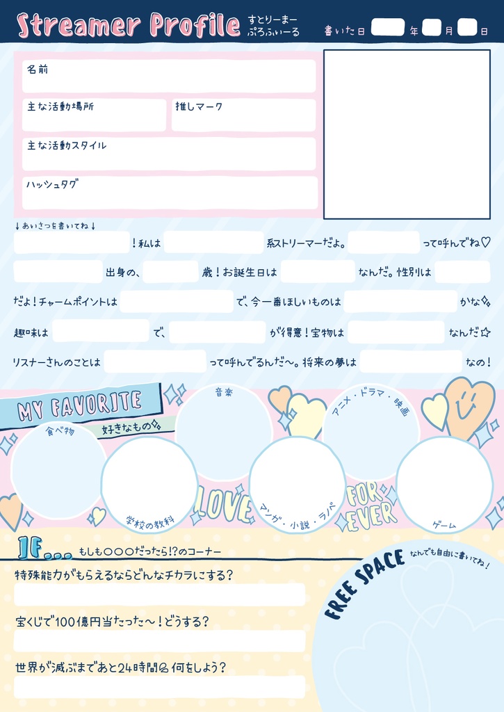 無料配布 プロフィール帳のテンプレート作ってみましたUTO's room。