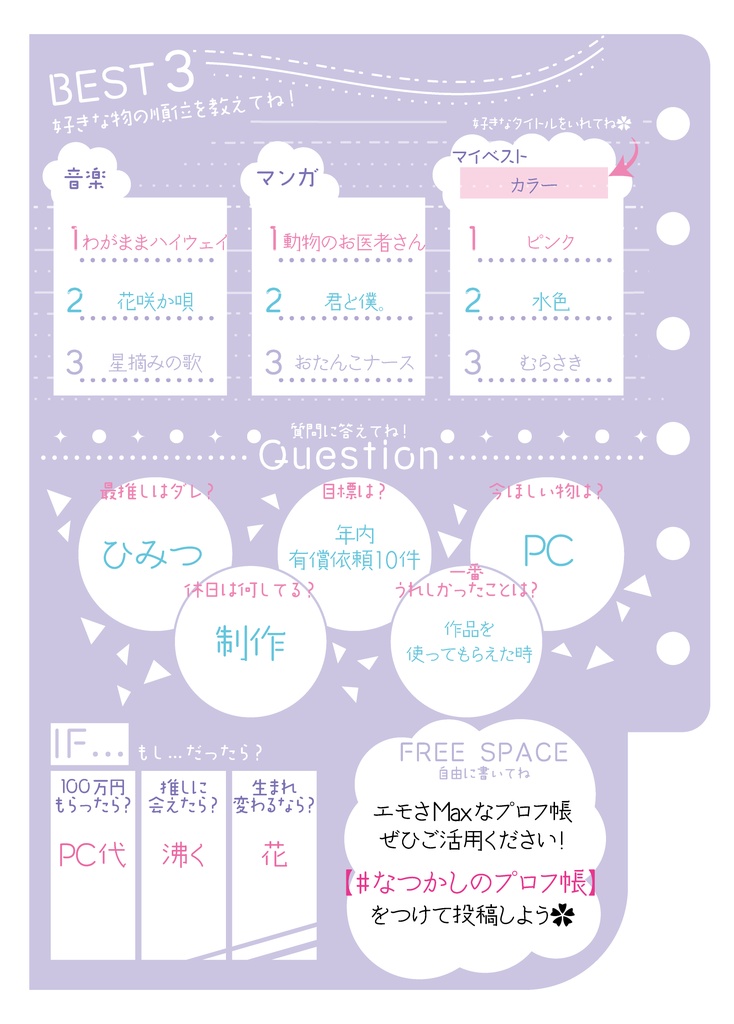 懐かしの平成風プロフィール帳テンプレートで交流を楽しもう。