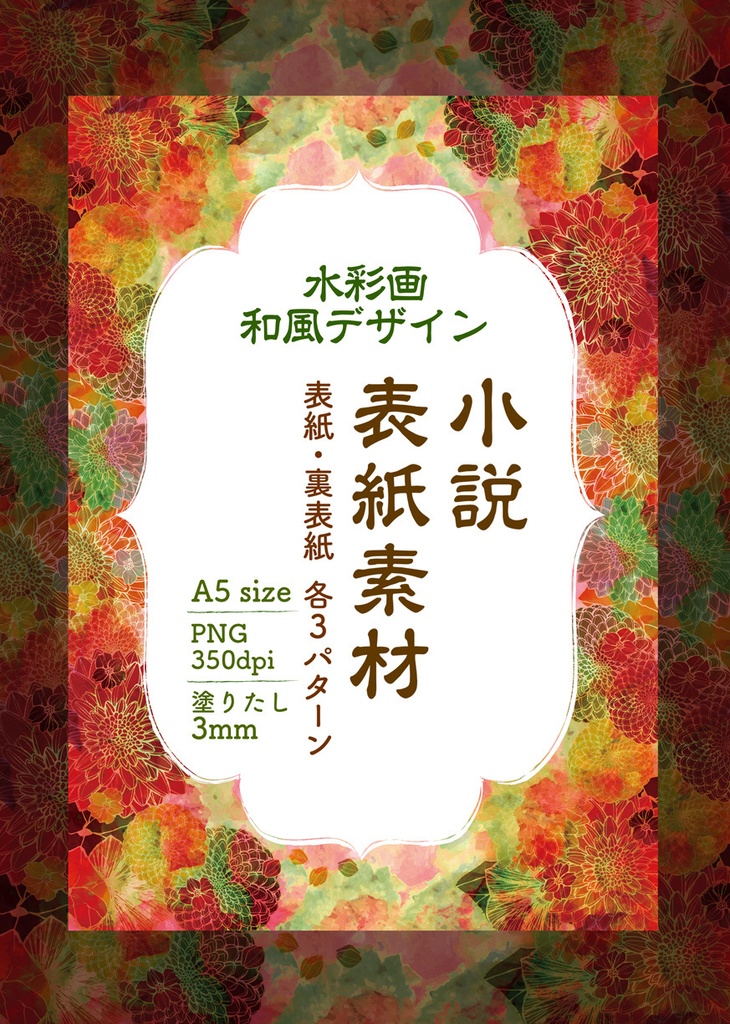 ☆シックな和柄の水彩☆ 和風デザイン 3パターン 同人小説 表紙素材 - 62亭。 - BOOTH。