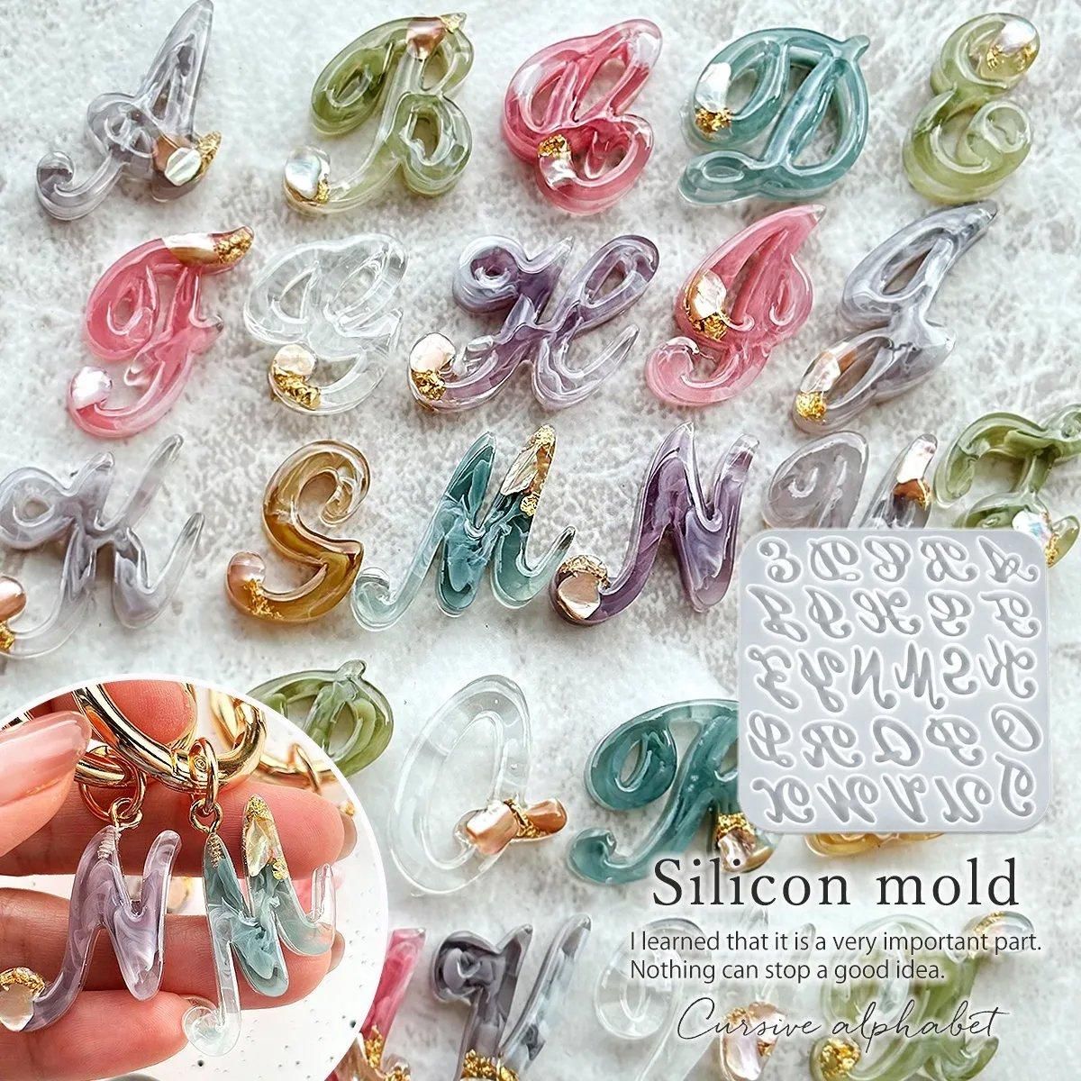 シリコンモールド アルファベット 筆記体 レジン シリコン モールド イニシャル シリコン型 UVレジン LEDレジン 型 大文字 英語 英字 -ハンドメイド アクセサリー パーツ レジン用品のネット通販 紗や工房。