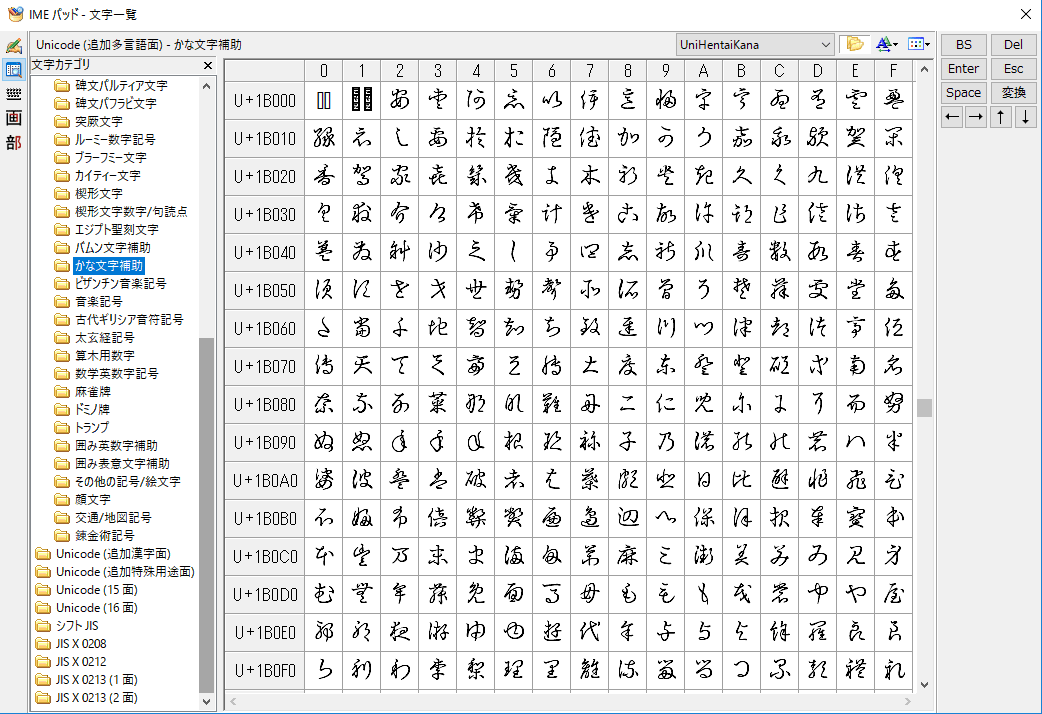 Unicode変体仮名一覧日本古典籍くずし字データセット。