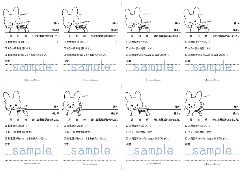 手書き風のイラストがかわいい伝言メモ帳のテンプレート・忘れないようメモを・連絡ミスがなくなります。無料テンプレートTemplateBox。