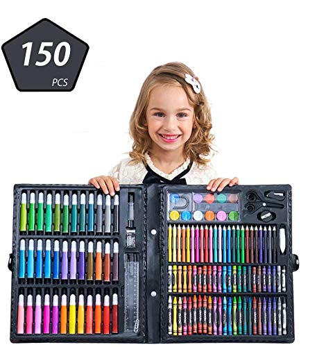 AmazonHIUGO お絵かきセット 色鉛筆 150色 176色 絵の具セット 水性色鉛筆 クレヨン 固形水彩 カラーサインペンオイルパステル 子供用 画板付き 塗り絵 携帯便利 収納ケース付き 油性色鉛筆 描き用 パズル玩具 卒園 入園 入学 誕生日プレゼント 文房具 絵具Black。