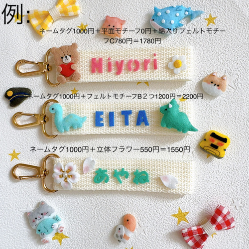 ゆう様専用ページ ハンドメイド フェルト ワッペン ネームタグ 名札 フェルト名札 ネームタグ 名前 ワッペン 表札・ネーム。