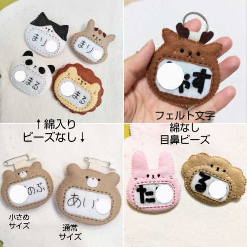 受注製作 3つ選べる*フェルトの動物ネームタグ・名札*刺繍付き* - メルカリ。
