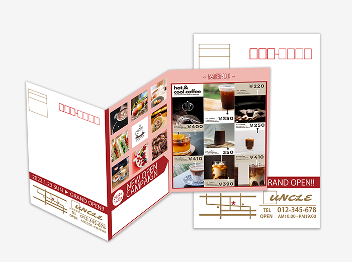2つ折り圧着はがきDMDM印刷から発送代行までラクスル。