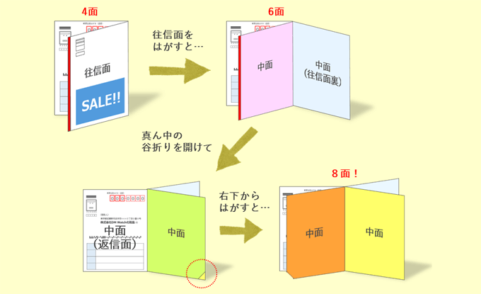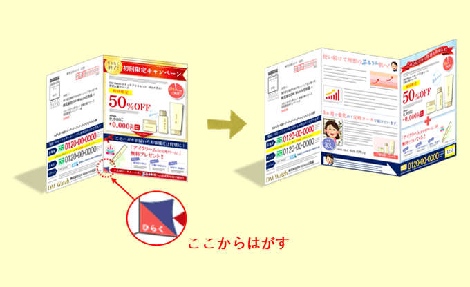 A4判Z型圧着DMはがき ずらし加工 の商品紹介ですウェブプレス。