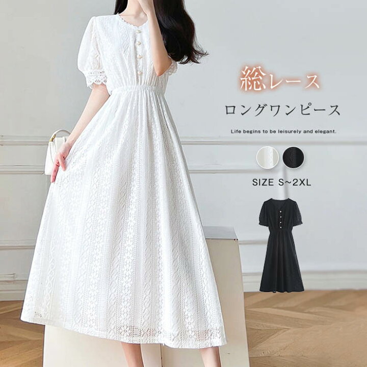 白レース素材 ワンピース 楽天市場 ワンピース レディース レースワンピース 半袖 総レース フレアワンピース きれいめ ワンピ Aライン フレアレース ロングワンピース 白ワンピース 可愛い ゆったり カジュアル 着痩せ お洒落 フォーマル エレガント ホワイト ブラック。