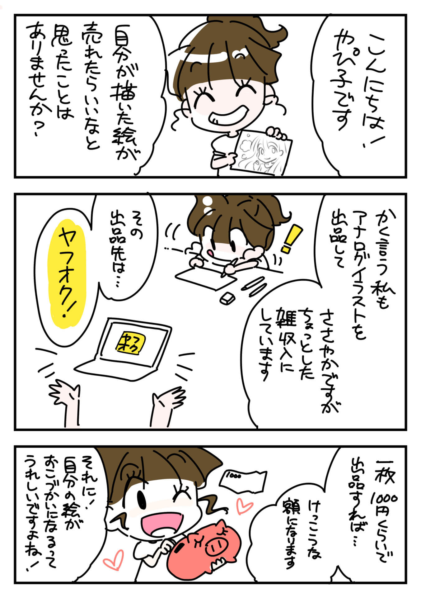 手描きイラストをヤフオクに出品しよう!入札・落札されるコツ教えます! 出品編やぴ子ブログ。