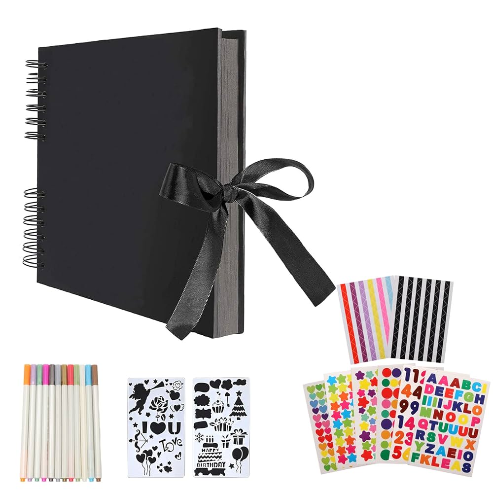 Amazon.co.jp: GWHOLE スクラップブック 手作りアルバム フォトアルバム DIY 台紙 30枚60ページ 20.5CMx20.5CM写真アルバム 貼るタイプ シール付き 思い出帳 おしゃれ 写真収納 ギフト 誕生日 結婚式 日記 黒 : ホビ。