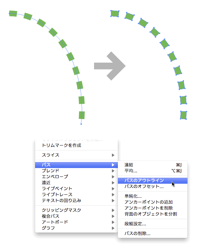 Illustrator線などのパスをアウトライン化 - デザインのメモ。
