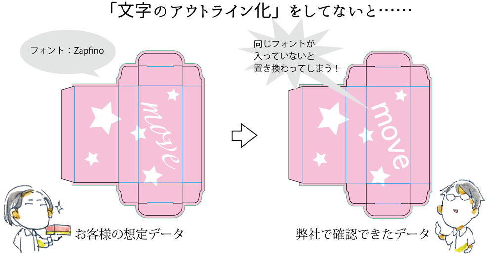文字のアウトライン化」とは?必ず必要?「アウトライン化」しないとどうなるの? - 化粧箱の印刷・制作専門オリジナルパッケージ なら化粧箱ムーブ。