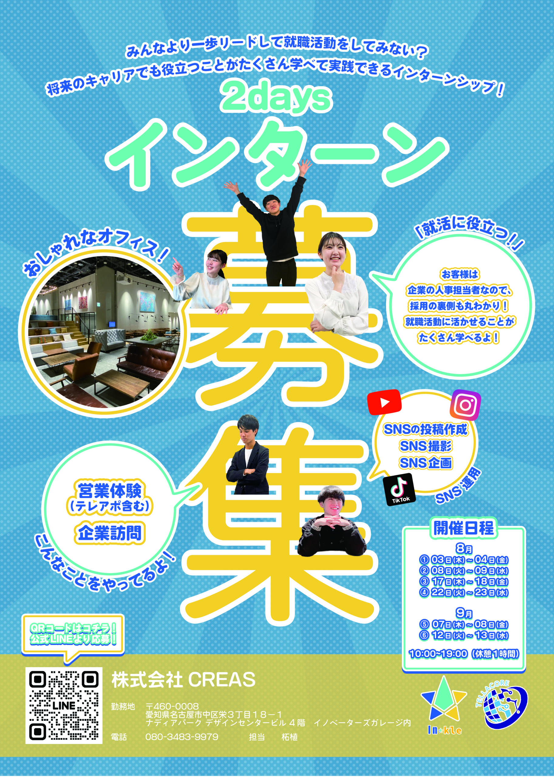 夏期2dayインターン募集開始! – 株式会社CREAS。