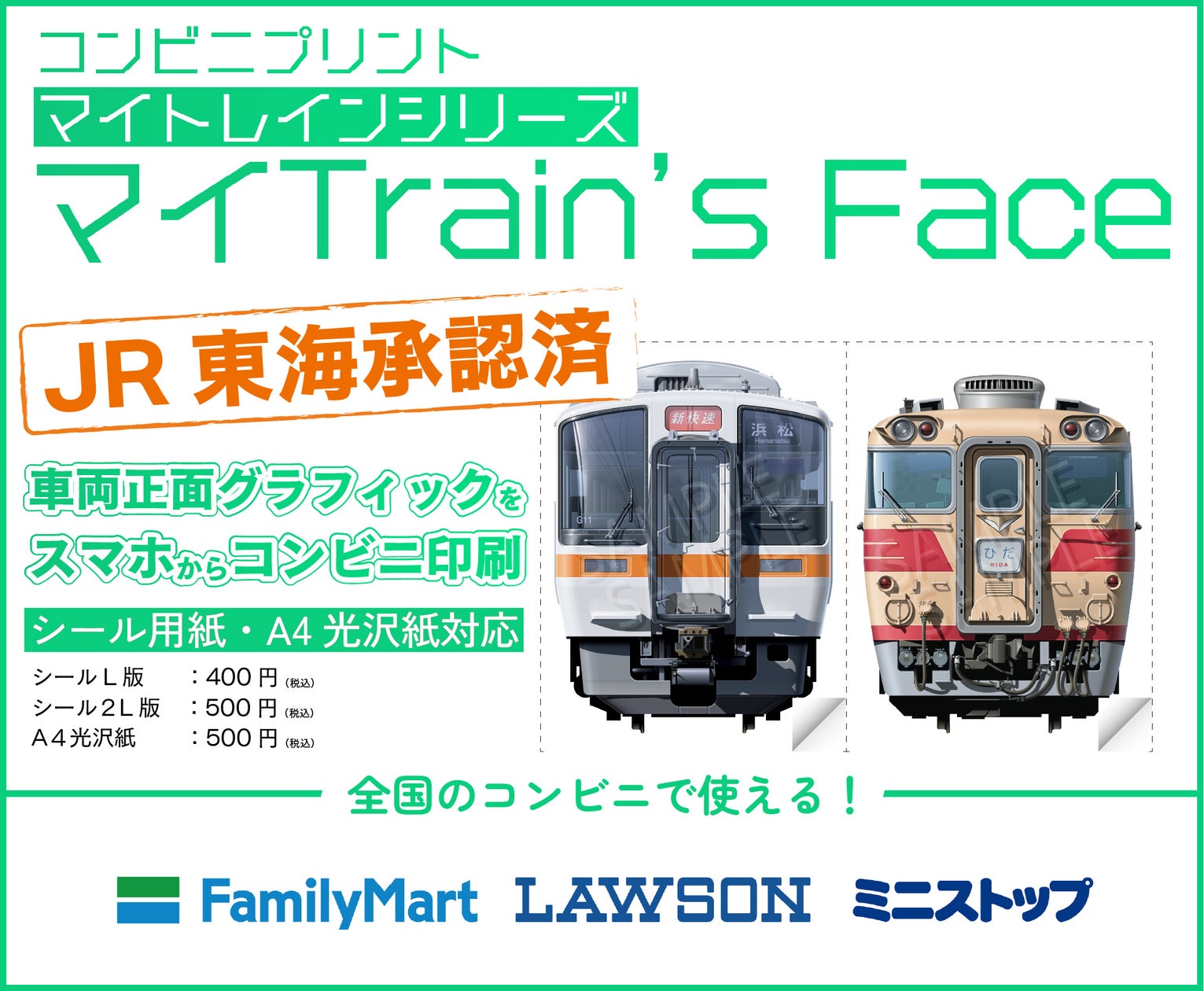 JR東海承認済 超リアル鉄道車両の正面グラフィックのコンビニプリントサービス『マイTrain's Face』が遂に登場!株式会社サムライソードのプレスリリース。
