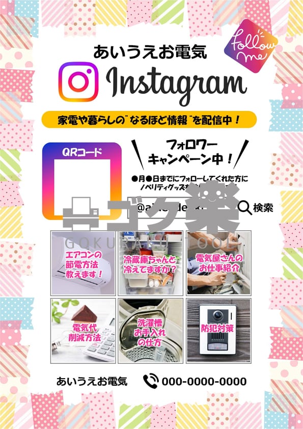 E01-23_インスタグラムフォローしてね 3種類ゴク楽チラシ データ・ダウンロード。