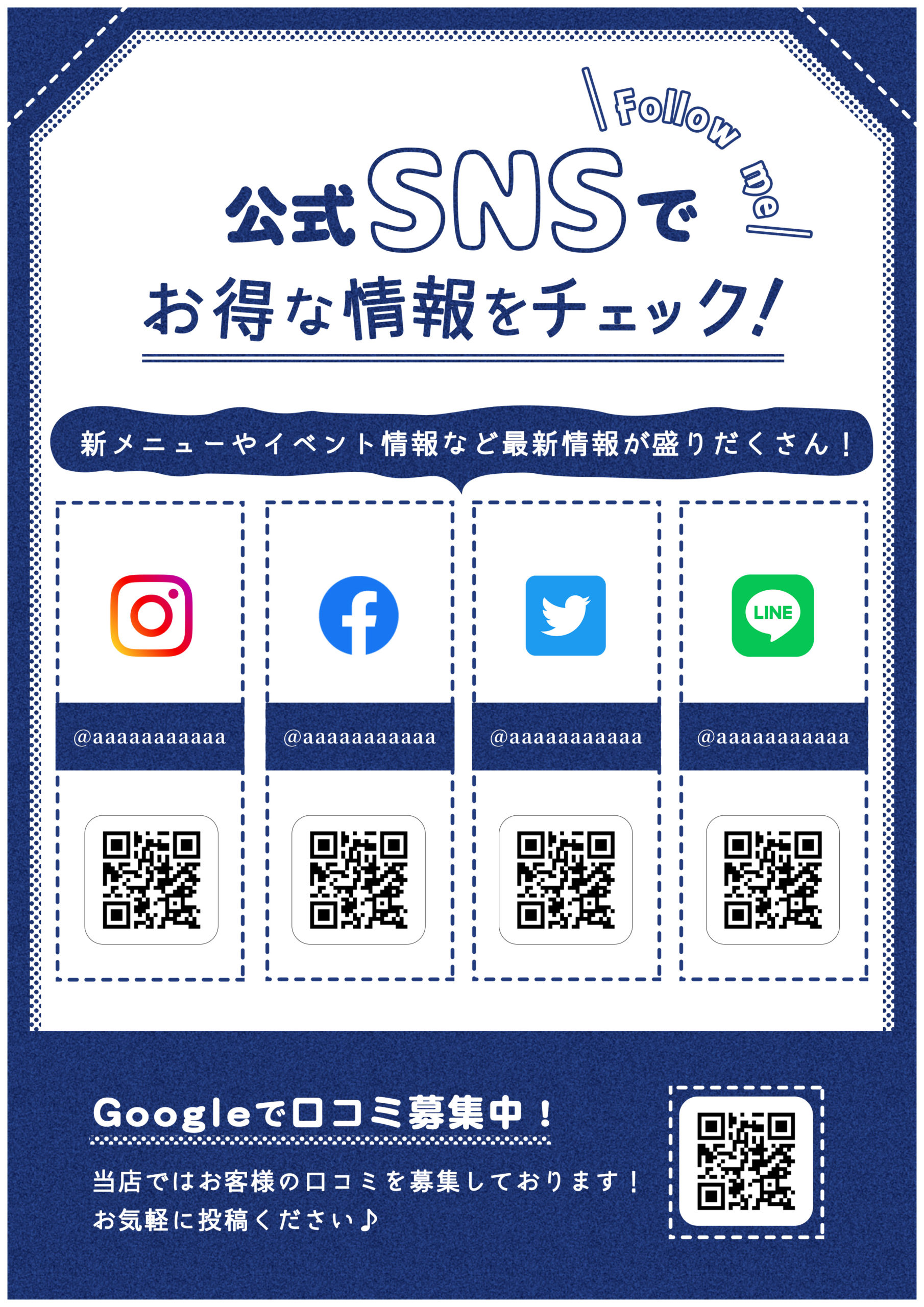 SNSの誘導に特化したレイアウトのチラシのテンプレート を追加いたしました💁♀️飲食の方はtwitter多いのですがサロンの方はあまりtwitter活用されてないですよね🤔リアルタイムの空席情報流したりするのに便利で インスタとはまた違った活用の仕方がありますよ💡 コロナ。