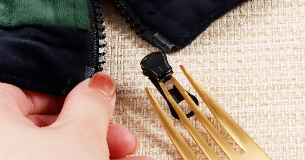 ファスナーが片方外れた時やフォークを使ったカンタンな直し方を紹介!締まらず開いてしまう場合の対処方法も解説します。