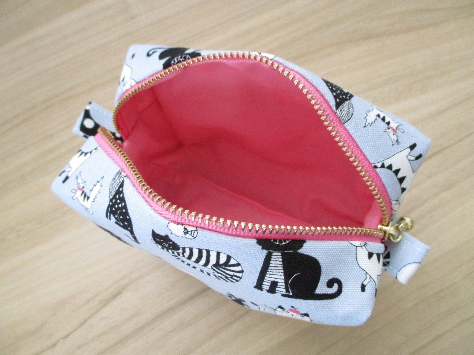 型紙付き 裏地付きボックスポーチ スクエアポーチ ~ファスナー18㎝~handmade studio jms ハンドメイドスタジオジェイエムエス。