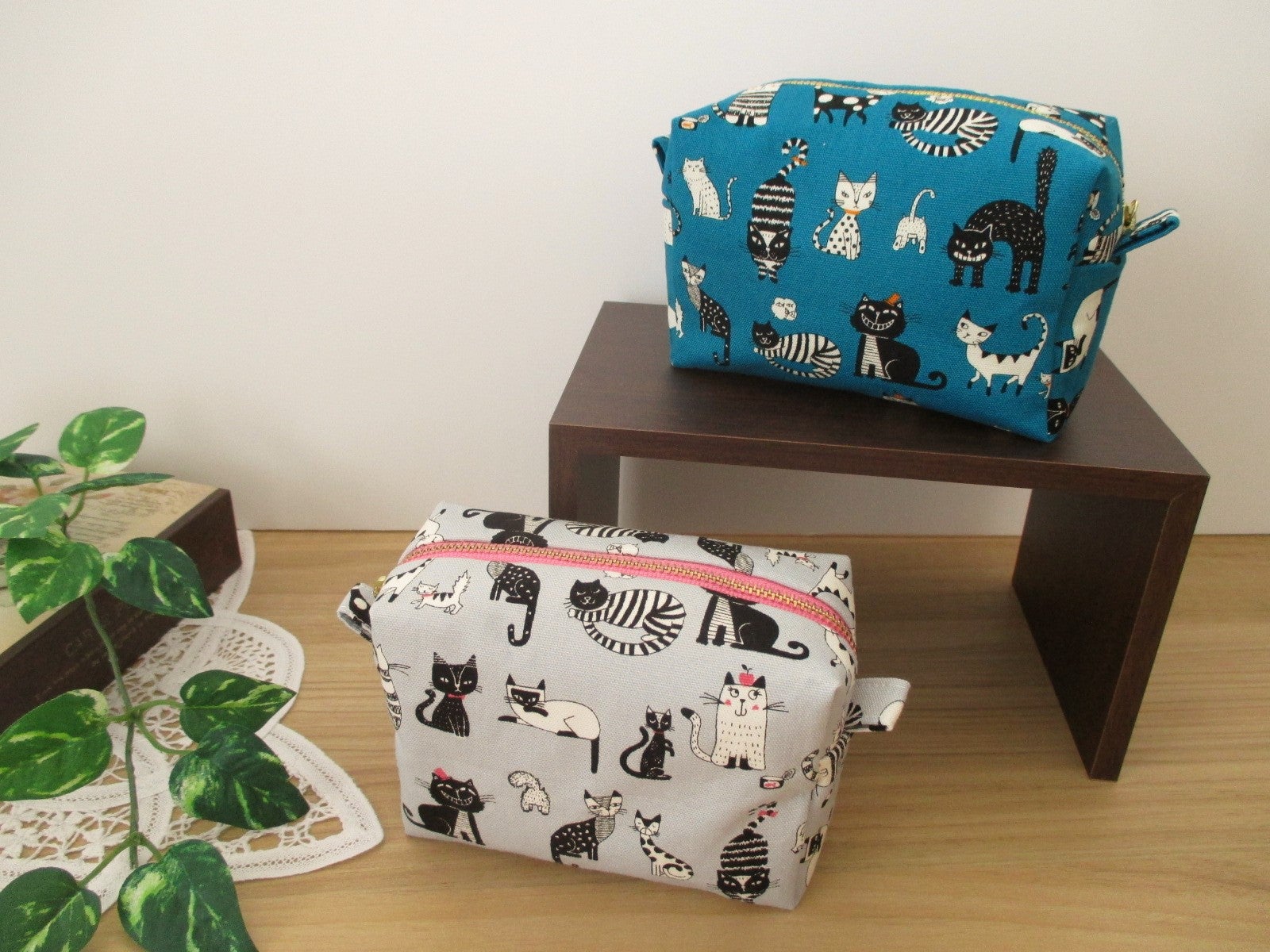 1 2 たっぷり入る!!20cmファスナーの裏地付きボックスポーチhandmade studio jms ハンドメイドスタジオジェイエムエス。
