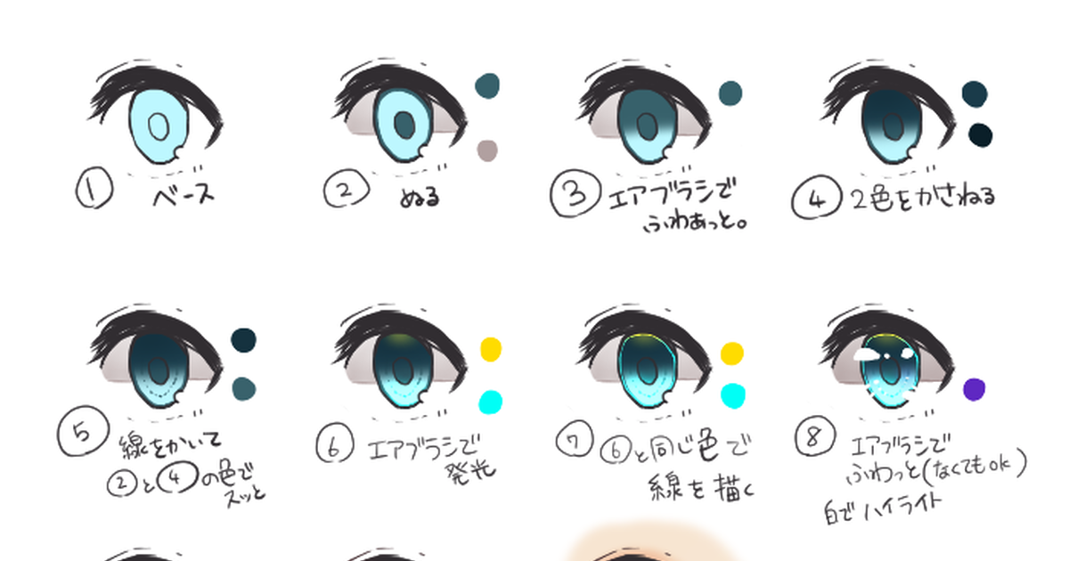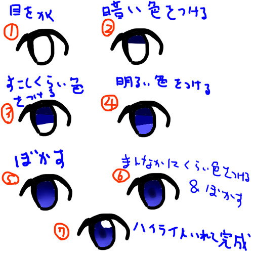 簡単な目の塗り方!初心者向けのシンプルな手順お絵かき図鑑。
