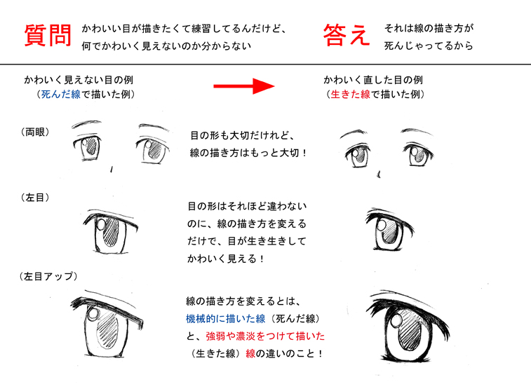 初心者の「なぜか上手く描けない」を解決!目の描き方テクニック編いちあっぷ。