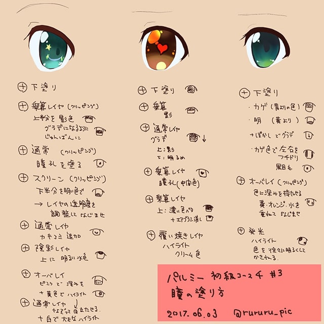 簡単にそれっぽく見えるキラキラ目の塗り方絵師ノート。