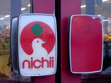 駐車場側出入り口 「ニチイ」ロゴマークの扉が1カ所 - 旭川経済新聞。