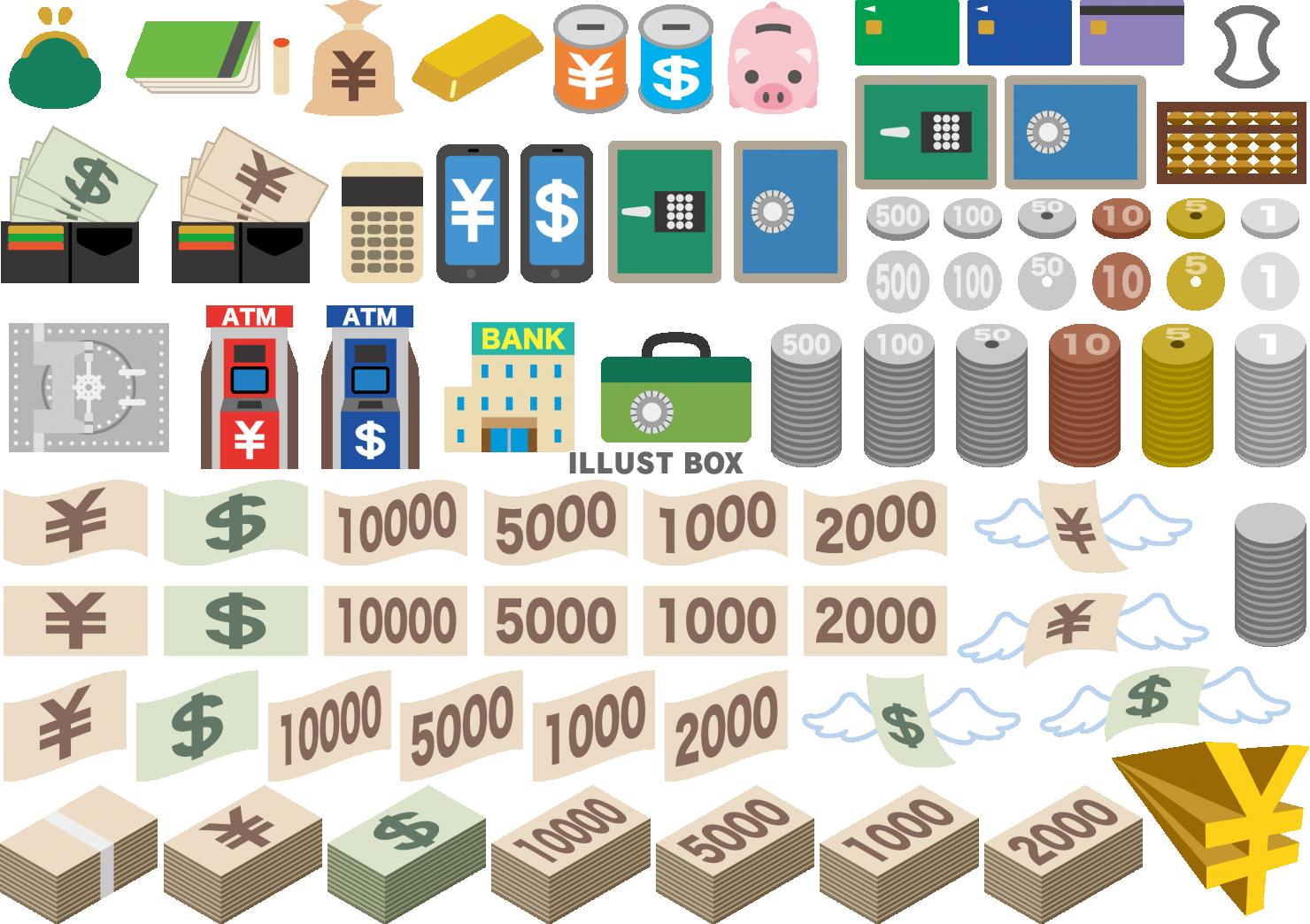 お金 マネー に関するアイコン集 カラー:イラスト無料。