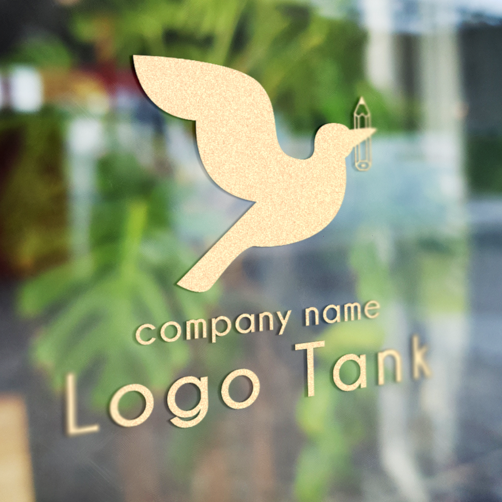青い鳥と鉛筆のロゴ ロゴタンク 企業・店舗ロゴ・シンボルマーク格安作成販売。