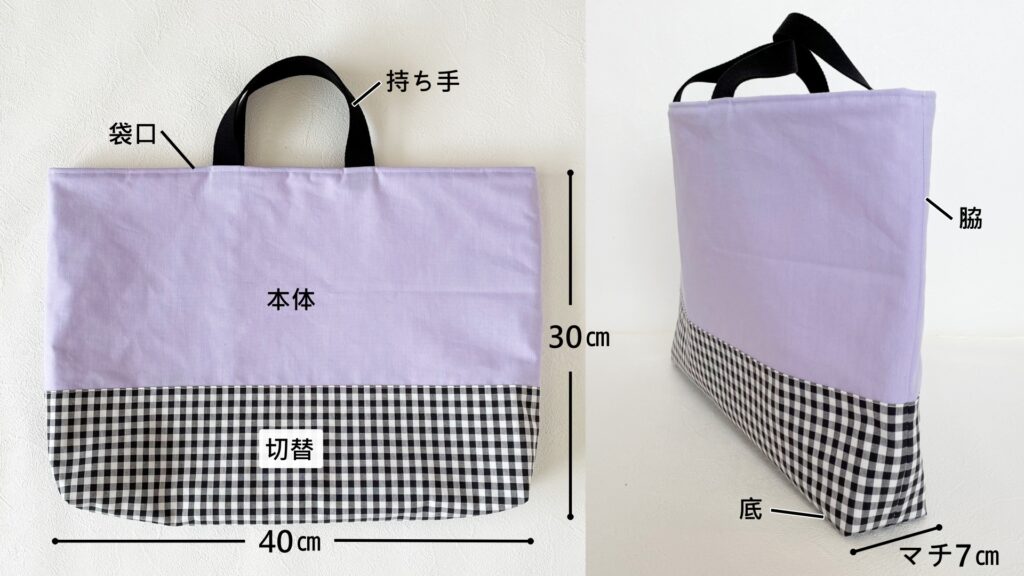 オリジナル型紙 たっぷり7㎝マチ レッスンバッグの作り方 入園入学5点セット - 縫いナビ 生地のマルイシ。