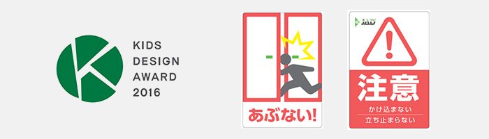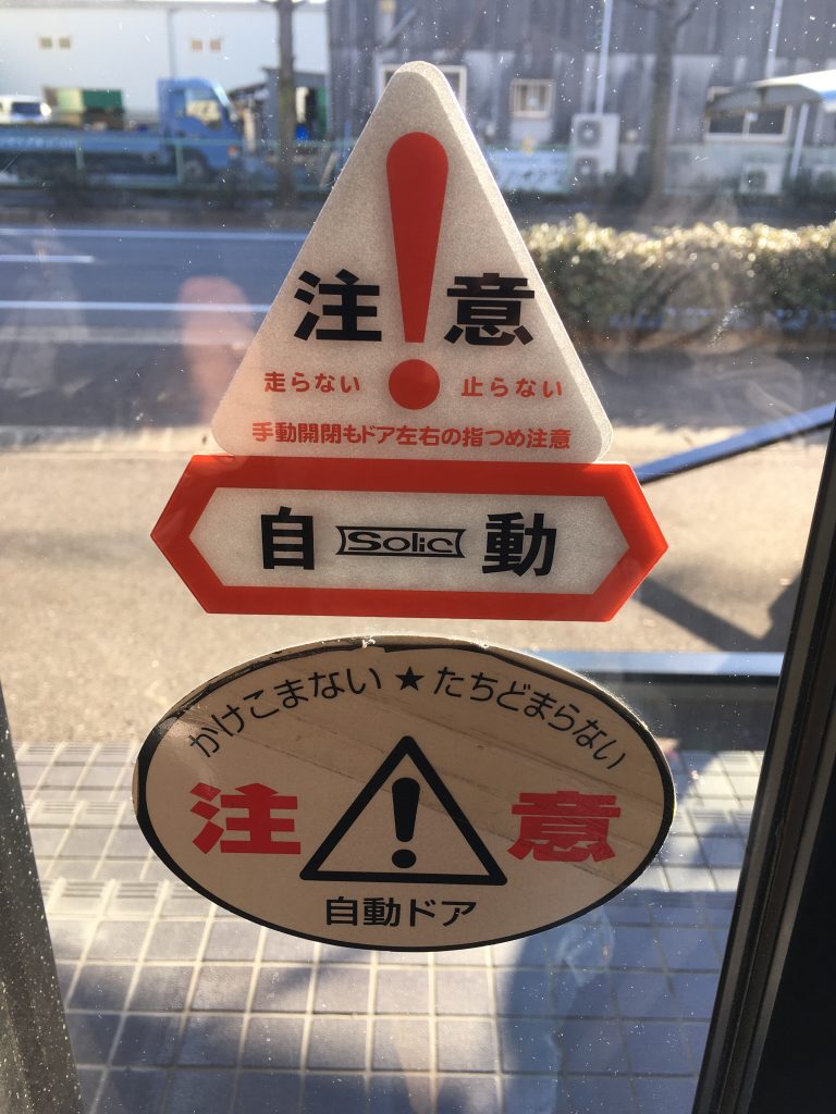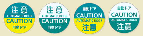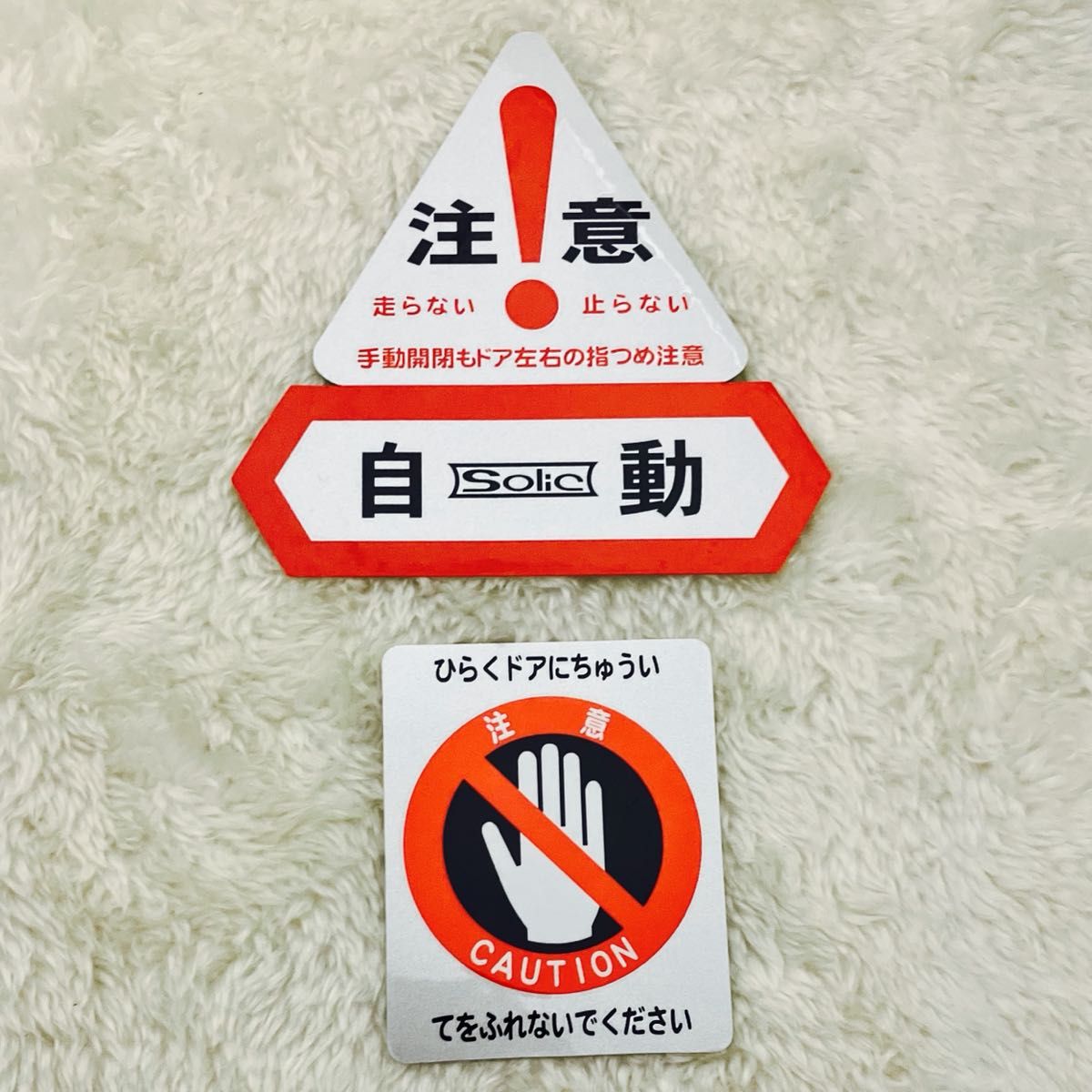 注意喚起! 注意サイン・注意マーク 自動ドアやエレベーター付近に!ドアに挟まれ注意色付きシール! 店舗・飲食店・チェーン店・施設自動ドア・エレベーターカッティング・印刷専門 思い出屋さん。