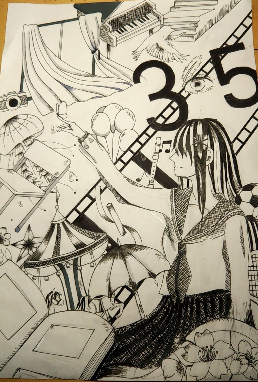 パク on X: " 卒業文集卒業文集イラスト卒業文集表紙ペン画卒業 もうすぐ卒業ということで!卒業文集のクラスの表紙のイラスト募集してたんで描いてみた!左は挿絵~♪ペン画初めて ˙◁˙ パパパパァhttps:t.co M3WoMtw0EH"X。