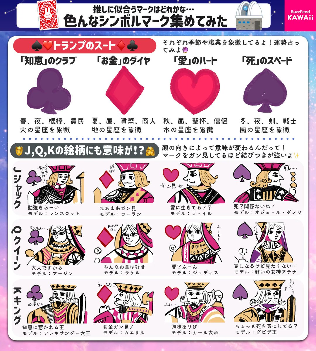 BuzzFeed🌼Kawaii on X: "トランプのマークって実は深いんです❤️♣️ 推し活が捗りそうな シンボルマークの豆知識 をまとめました🌟https:t.co f9BW0COaWB"X。