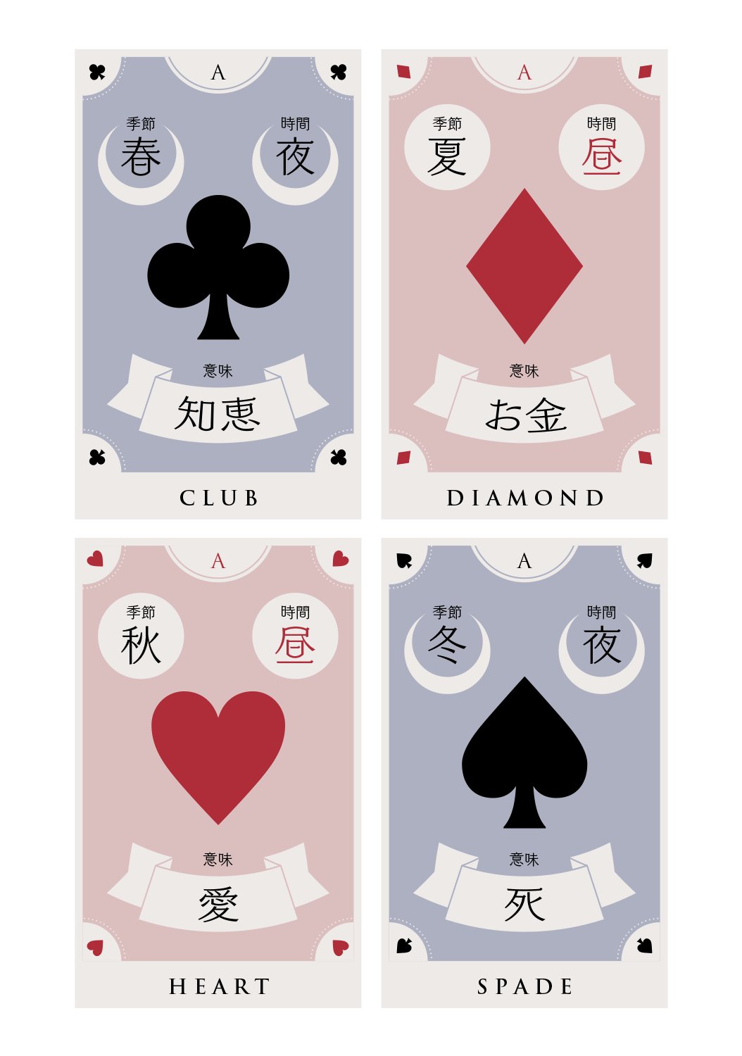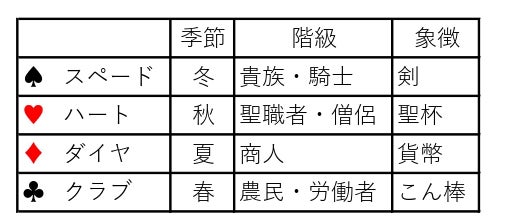 マーカット on X: "トランプの枚数は1~13までを足した91という数字にマーク の種類の4をかけ、ジョーカー分の1を加えた数字の365で一年間の日数を表していたり、それぞれのマークが春夏秋冬を表していたりと色々な意味があります。https:t.co EbBTM7g8xV"X。